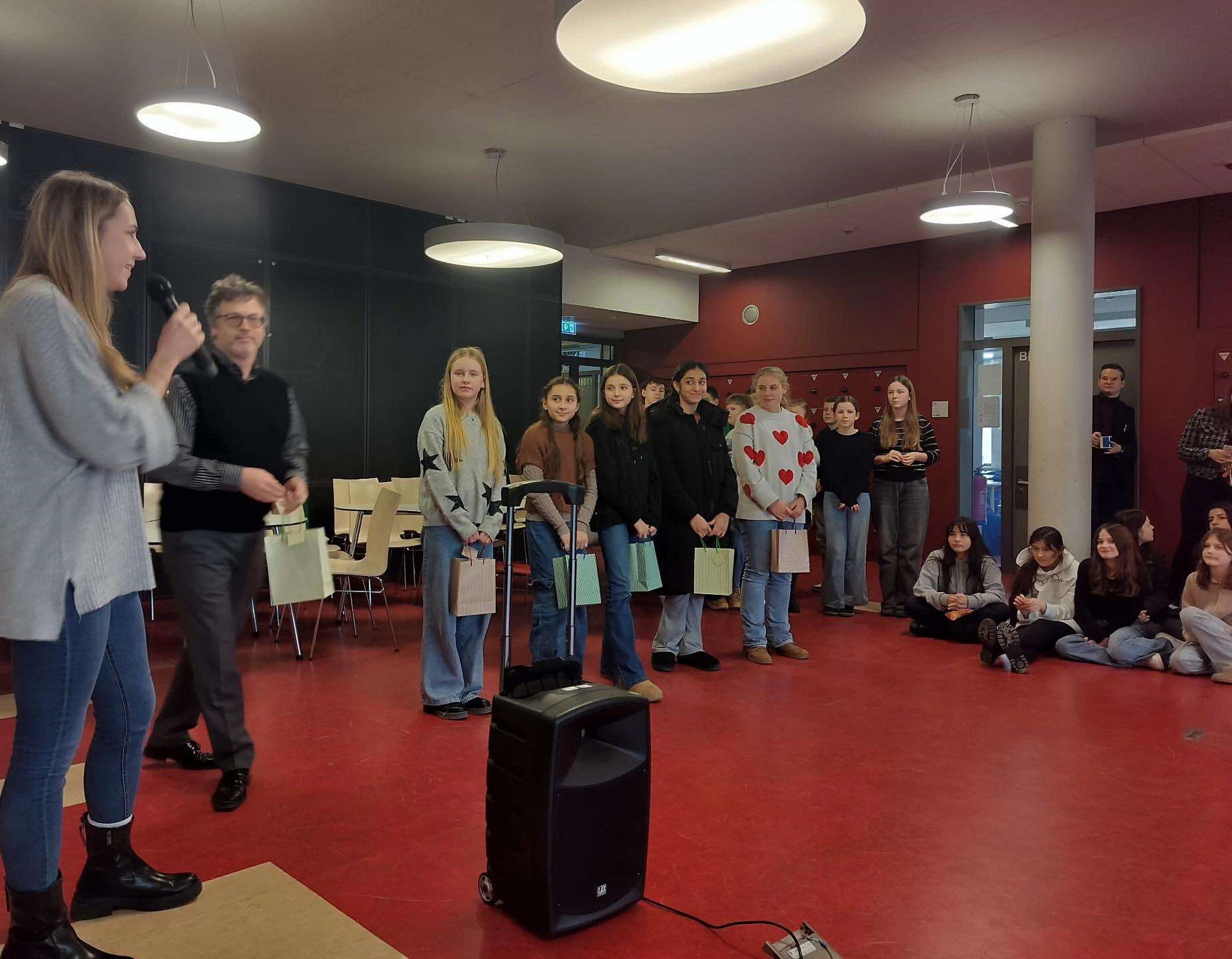 Unsere diesjährige Gewinnerin des Vorlesewettbewerbs der Klassen 6, Nahla Bottler, hat sich mit einer überzeugenden Leseleistung gegen starke Konkurrenz durchgesetzt. Mit sicherem Vortrag, passender Betonung und spürbarer Freude am Lesen konnte sie die Jury beeindrucken. Am 18.02. wird sie unsere Schule beim Stadt-/Kreisentscheid vertreten und dort in die nächste Runde gehen. Wir sind sehr stolz auf diese tolle Leistung und drücken ihr fest die Daumen. Wir wünschen ihr viel Erfolg und vor allem ganz viel Freude beim Vorlesen! 📚✨